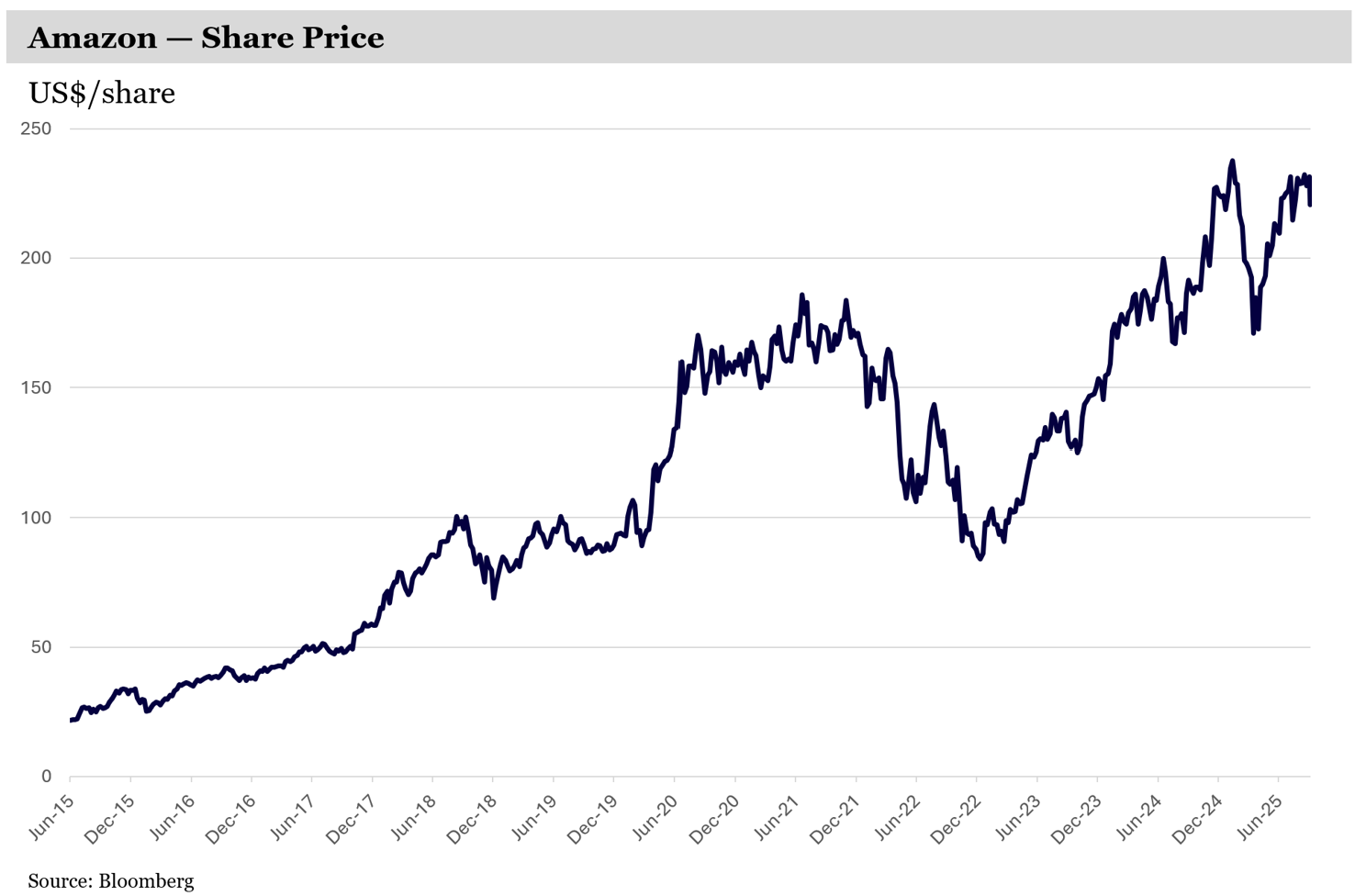- Amazon, Microsoft and Alphabet from the global enterprise adoption of cloud computing;